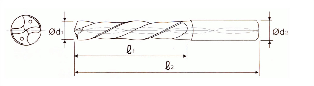 | 刃徑d1 | 柄徑d2 | 全長L2 | 刃長L1 |